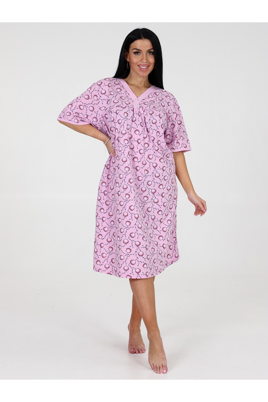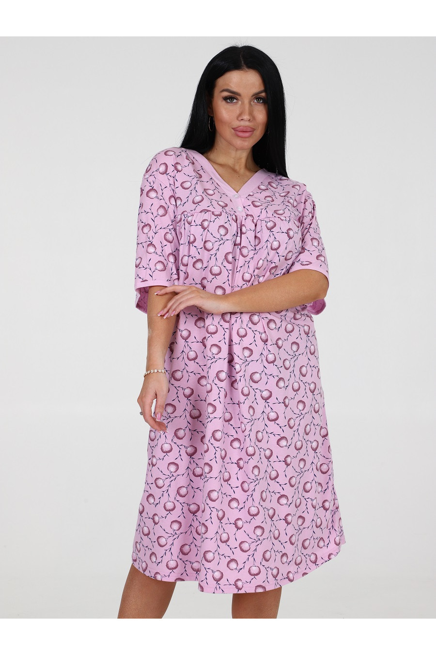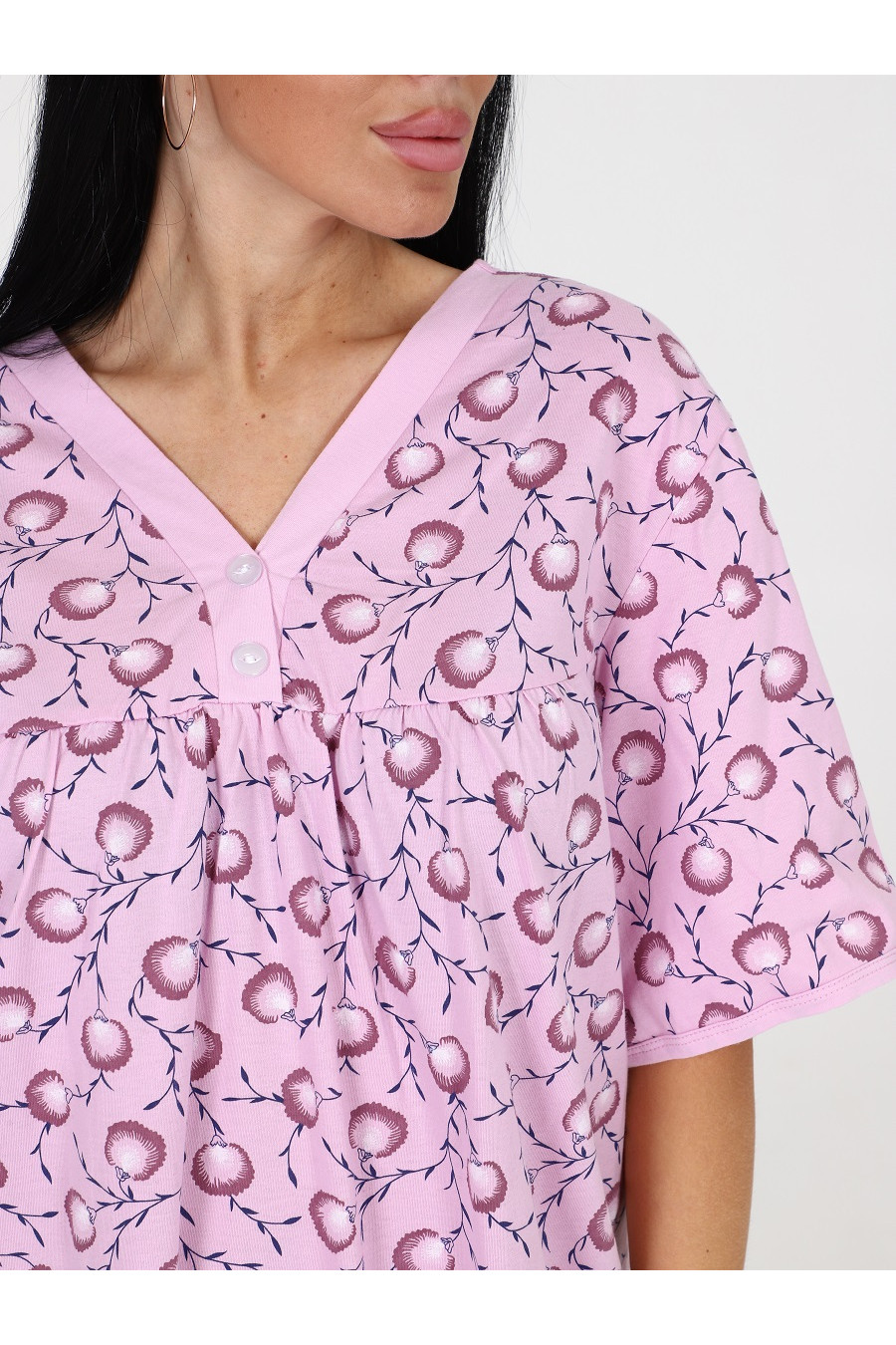 Описание: Ночная сорочка выполнена из кулирного полотна 100% хлопка. Сорочка свободного кроя с коротким рукавом. На вырезе декоративные пуговки.