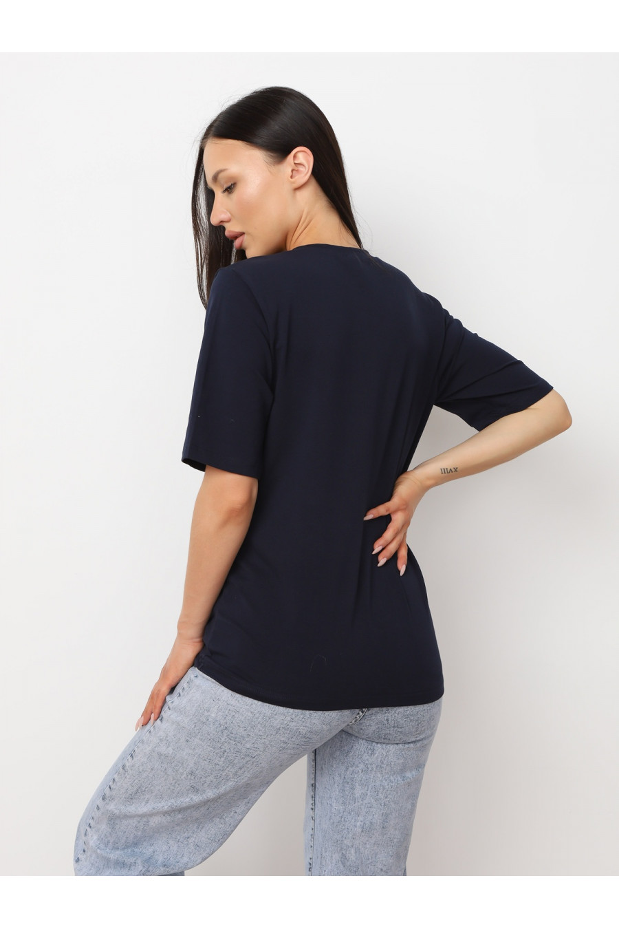 Размер модели 44, рост 170. На фото представлена футболка 44 размера.