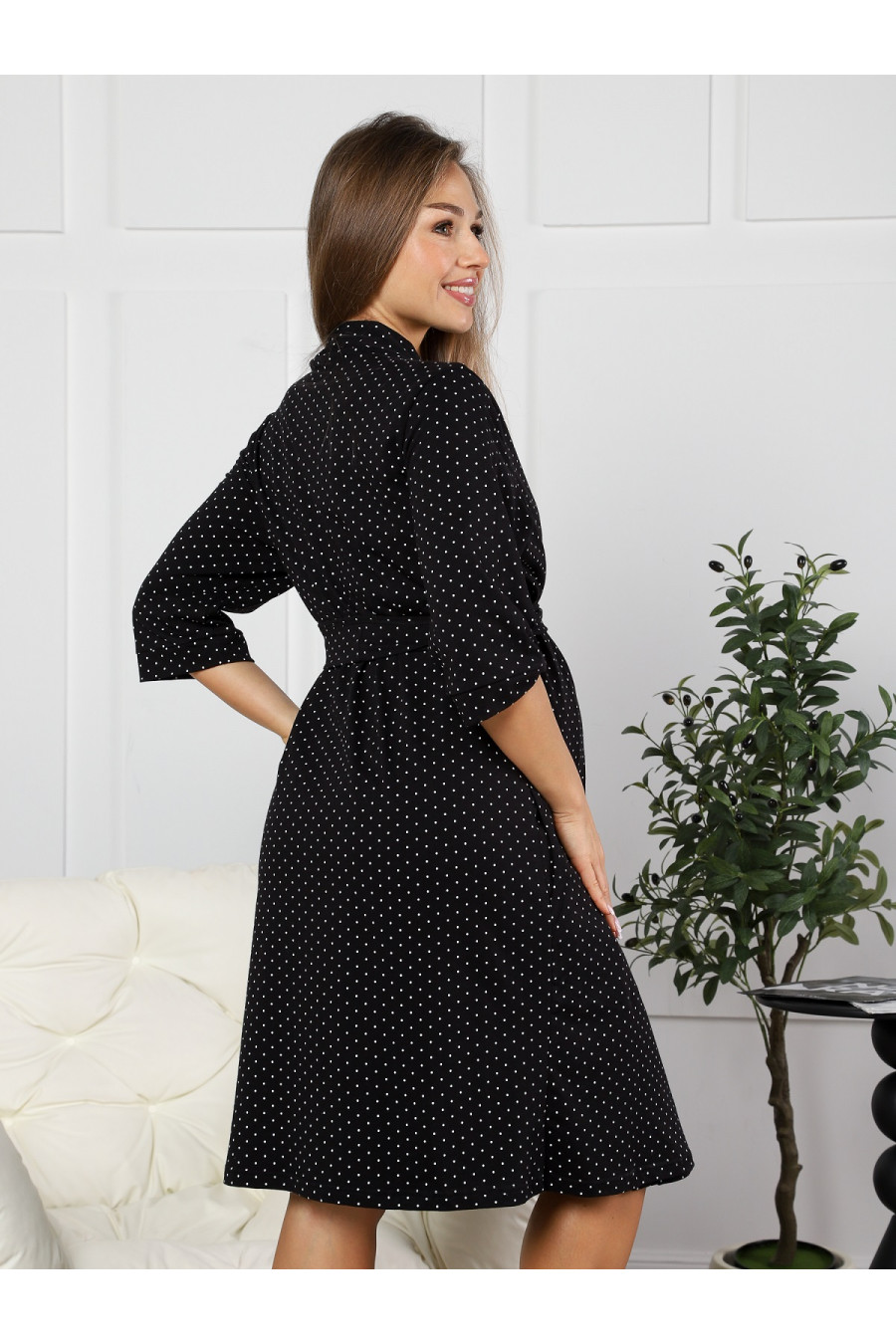 8.168 Комплект для беременных (халат, сорочка) черный, горох