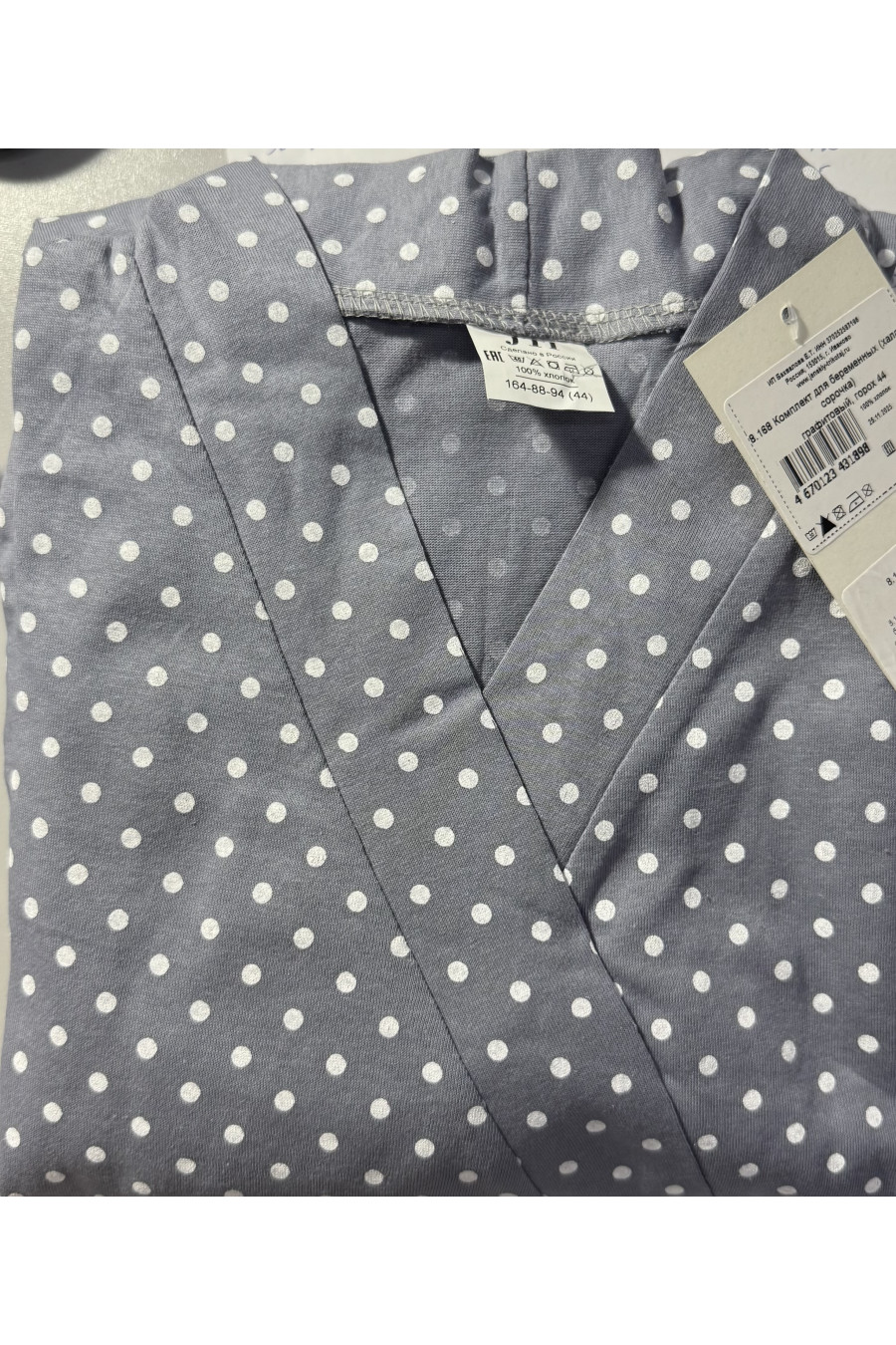 8.168 Комплект для беременных (халат, сорочка) графитовый, горох